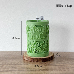 圣诞节浮雕圆柱香薰蜡烛节日礼物氛围感圣诞节装饰摆件蜡烛candel