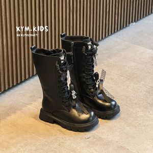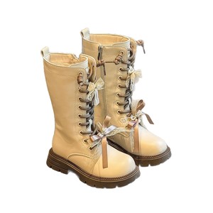 2025年冬季新款韩版儿童高靴甜美洋气蕾丝蝴蝶结加绒女童长筒靴