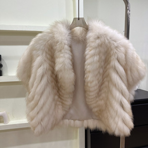 新款【沪色千金】狐狸毛车条廓型落肩斗篷马甲 秋冬小坎肩外套女
