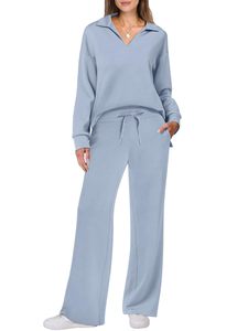 2025亚马逊欧美秋冬新款时尚休闲女装长袖抽绳纯色通勤长裤套装女