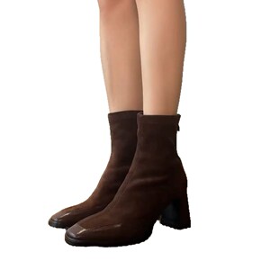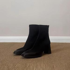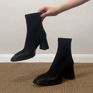 巨包腿显高显瘦方头粗跟优雅弹力瘦瘦靴新款高跟百搭网红裸靴女