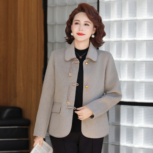 中年妈妈秋装外套2025新款50岁洋气中老年女装春秋短款毛呢呢大衣