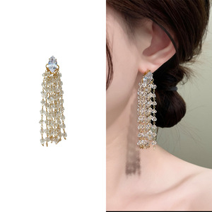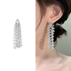 银针菱形锆石长款流苏耳钉小众设计个性夸张耳环轻奢高级感耳饰女