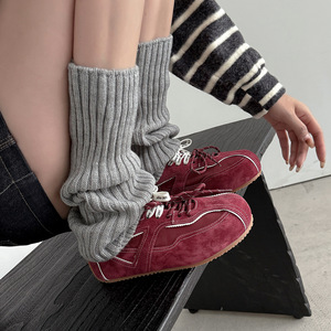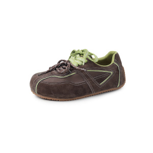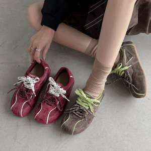 洋气舒适拼色德训鞋牛反绒面2025秋内增高中跟圆头系带休闲单鞋女