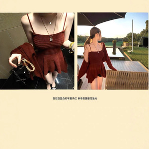 盘盘美神悸动秋季短款针织外搭开衫长袖外套女+吊带针织短裙