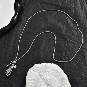 厂家直销跨境西班牙俄罗斯潮流款抽拉TO扣几何水晶项链女款毛衣链