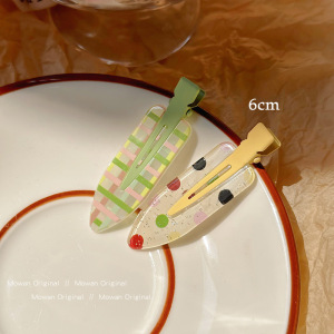 4#彩椭圆碎发夹-绿色一对约5.2cm