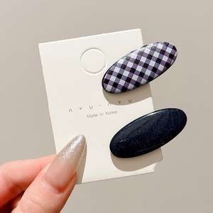 3#彩椭圆碎发夹-紫色一对约5.2cm