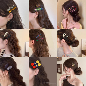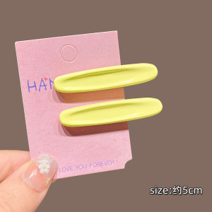 5#彩椭圆碎发夹-黄色一对约5.2cm