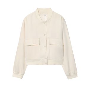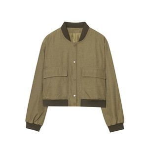 ZR跨境外贸女装alo复古立领螺纹双口袋女式飞行员夹克春秋外套
