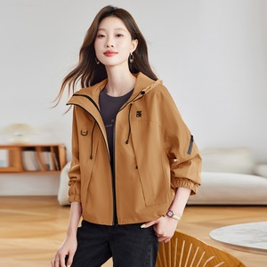 2025年秋季新款时尚百搭休闲连帽外套女宽松显瘦冲锋衣夹克上衣潮