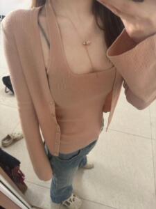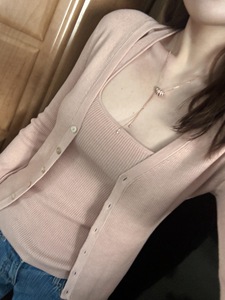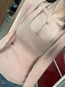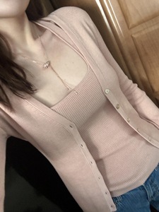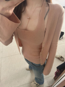 2025超好看秋季粉色针织开衫配吊带纯欲修身辣妹上衣背心套装