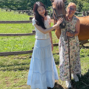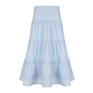 明星同款气质甜美少女蓝色半身裙度假风简约休闲甜辣百搭A字长裙