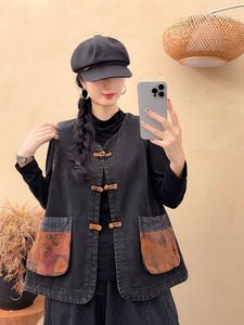 秋季新款2025 复古立领盘扣设计牛仔马甲双口袋休闲无袖坎肩
