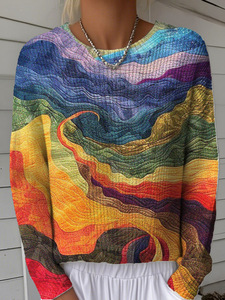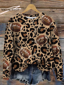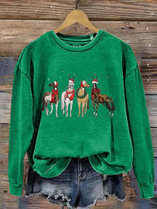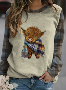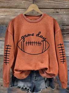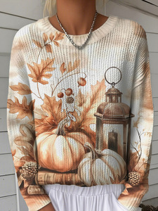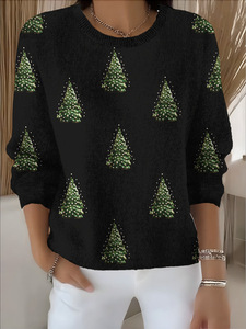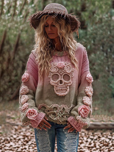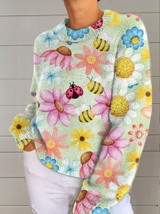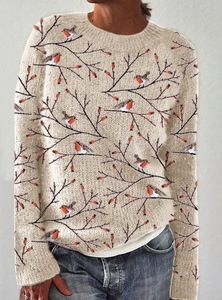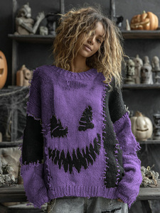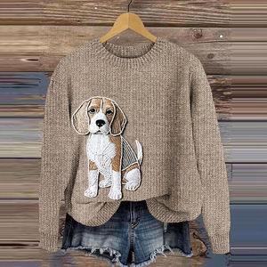 跨境圆领毛衣女秋冬季2025新款复古印花美式潮牌宽松防针织衫外套