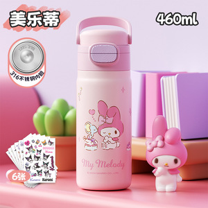 Vanow三丽鸥库洛米儿童保温杯女孩吸管便携小学生上学专用水杯子
