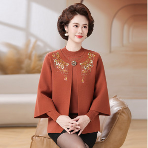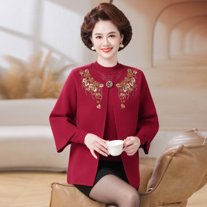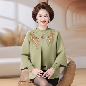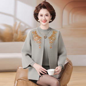 2025新款重工艺中老年女装上衣服两件套妈妈秋装针织开衫套装外套