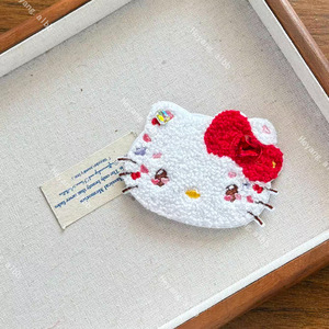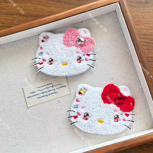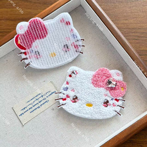 新款卡通可爱猫咪魔术贴毛绒少女心刘海贴发卡发饰批发