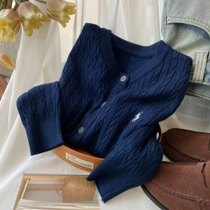 2025小马刺绣显瘦百搭宽松长袖针织开衫女洋气复古软糯麻花毛