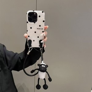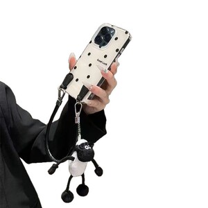 ins黑色波点适用iPhone17PROMAX斜跨手机壳16新款15/14小众13/12