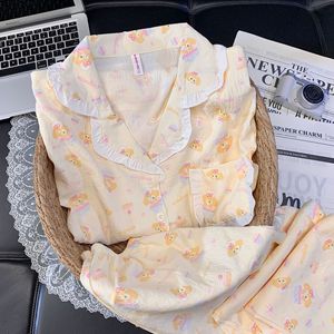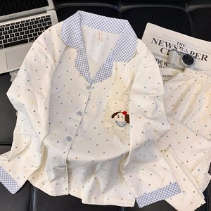 【甜豆狗狗】春秋简约长袖云朵绵可爱狗狗睡衣女套装家居服