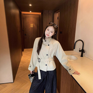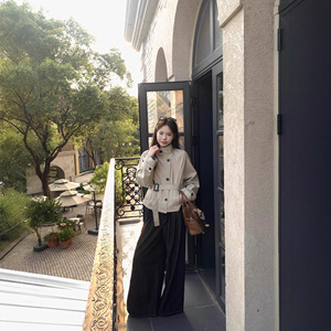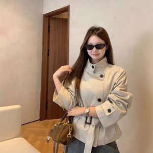 慵懒气质高级感短款风衣外套女2025年秋季新款英伦风立领收腰上衣