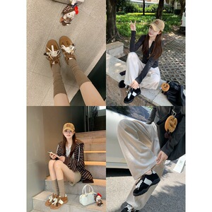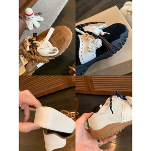牛皮~葡萄ma同款增高6cm鸳鸯鞋带串珠拼色厚底德训鞋女休闲运动鞋