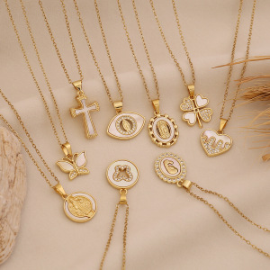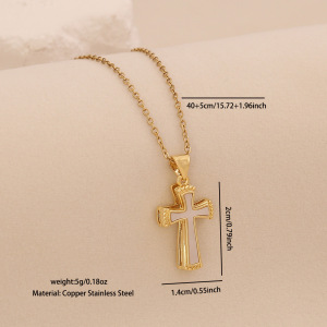 【冰萌】白贝十字架吊坠项链轻奢镀18K爱心蝴蝶花朵项链饰品N1650