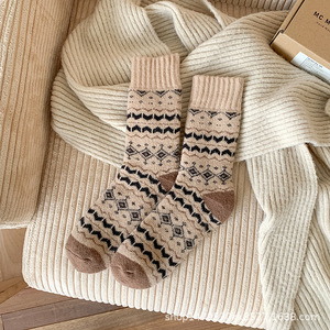 男士羊毛袜子加绒加厚冬季中筒袜巨厚毛圈冬季男士超厚毛绒羊绒袜