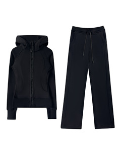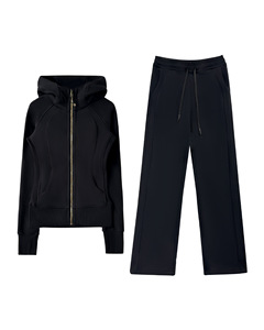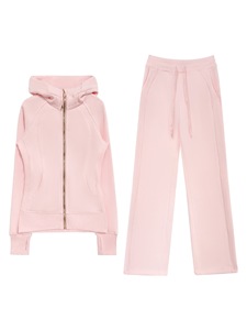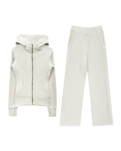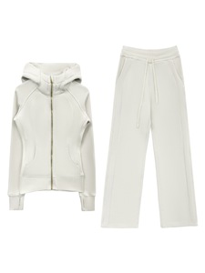 春秋lulu加绒金拉链卫衣套装女外套配高腰阔腿裤显瘦保暖休闲