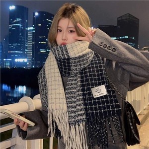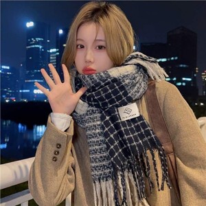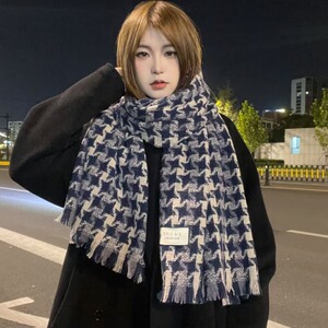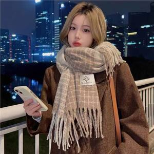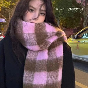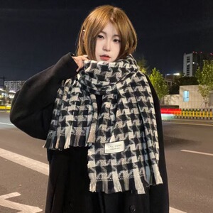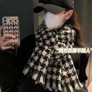 2025新款女秋冬季百搭千鸟格加厚格子围脖高级感氛围感百搭马海毛