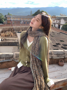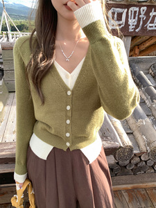设计感假两件长袖v领针织开衫毛衣女2025秋季新款高级感外套上衣
