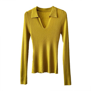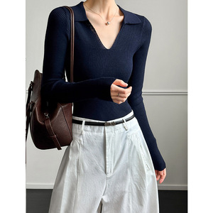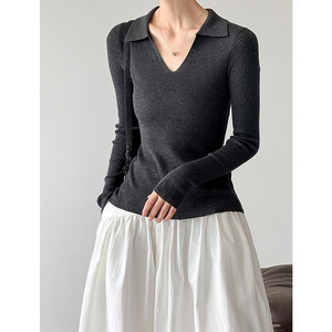 橘芷 早秋新款 显瘦V领内搭毛衣新款修身长袖针织打底衫上衣 568
