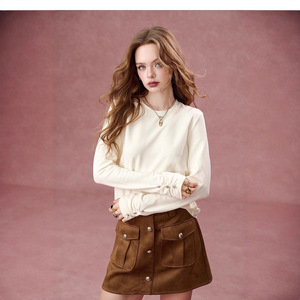 妖精的口袋细闪白色长袖t恤女2025秋季新款抽褶打底衫半高领上衣