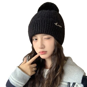 新款冬季帽子女时尚百搭毛线帽加绒加厚针织帽冬天骑车保暖帽子