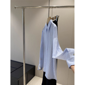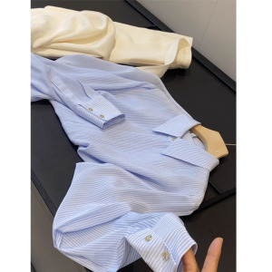 轻奢G端线!桑蚕丝19姆米重磅蚕丝天蓝色竖条纹衬衫2025秋季新款