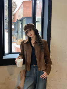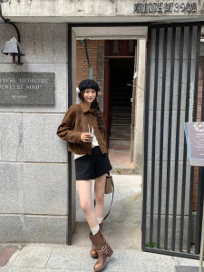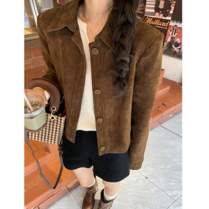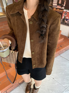 夏蓝汐雨SMBL RAIN春装新款复古麂皮绒飞行服上衣女夹克短外套女