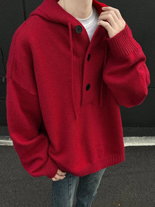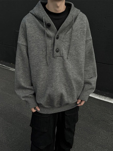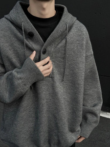 灰色美式复古连帽针织衫男款冬季加厚慵懒风毛衣重磅内搭卫衣外套