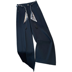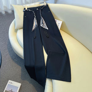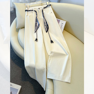 白色直筒牛仔裤女秋冬2025新款今年流行的爆款韩版丝巾腰带阔腿裤