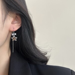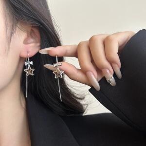 美拉德蝴蝶结豹纹星星耳线耳环女小众设计高级感耳钉长款秋冬耳饰