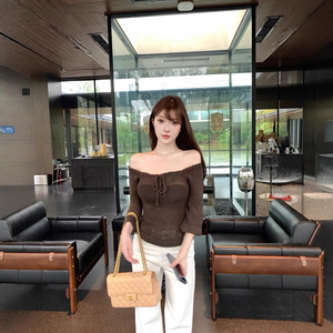 M900针织衫一字肩上衣T恤2025新款长袖修身显瘦气质时尚穿搭春秋