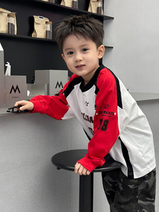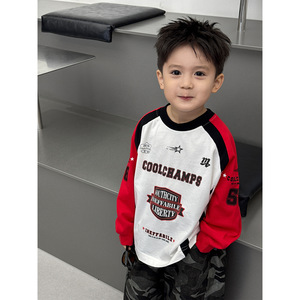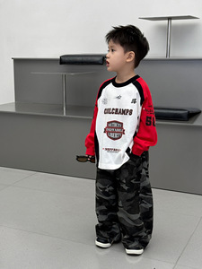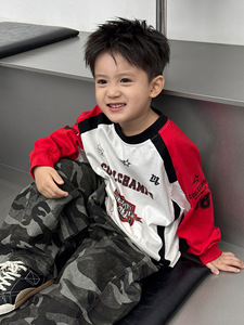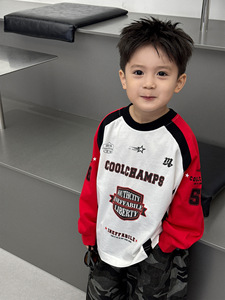 新品2025秋装韩版儿童赛车元素印花长袖休闲百搭宽松T恤潮牌童装