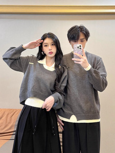 情侣装高级感套装一衣一裙叠穿针织衫配裙子两件套短款毛衣罩衫秋