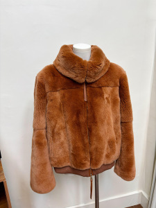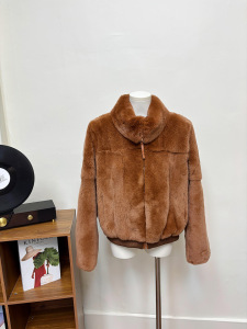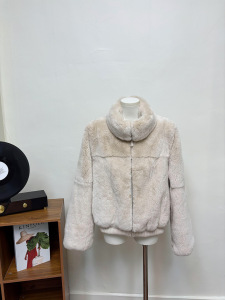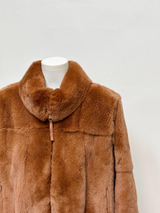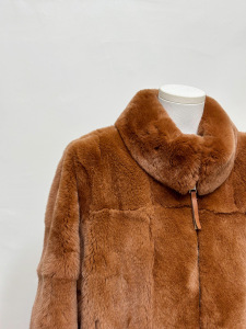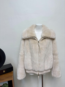 ANNA酱同款 100真獭兔毛老钱风立领皮草外套女短款翻领雷克斯兔