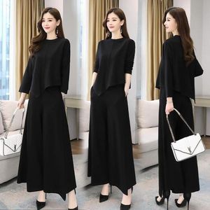 春秋装阔腿裤套装女减龄遮肚显瘦洋气休闲气质裙裤两件套