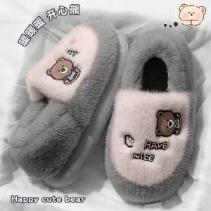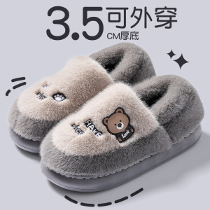 厚底棉拖鞋男士秋冬季2025新款室内家居卡通可爱加厚保暖毛绒棉拖