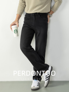 经典石墨水洗黑色男士直筒牛仔裤2025秋冬季复古通勤透气休闲长裤