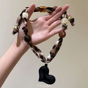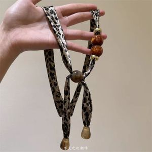 时尚前端~美拉德色豹纹串珠项链女小众独特设计毛衣链挂脖丝巾