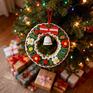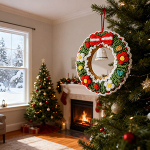 跨境新品 圣诞节圣诞装饰泡芙圣诞花环铃铛花环派对气氛装饰道具