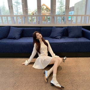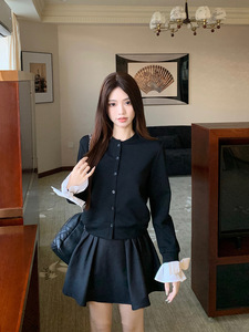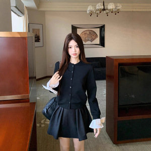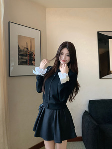 实拍 韩版假两件开衫卫衣蝴蝶结袖口拼接圆领长袖+A字芭蕾蓬蓬裙
